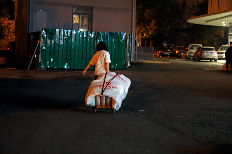 一個打包袋能裝200多件衣服,重約60公斤。孫楊洋攝