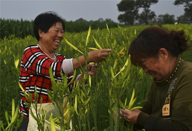 61歲的唐萬是唐家堡村第一批黃花菜種植戶。2020年,他將家中的30畝土地流轉給當?shù)睾献魃绶N植黃花。“以前自己種地的時候,一年下來收入有時還不到2000元。沒想到,30畝黃花地改變了我們一家的生活,現(xiàn)在每年都能有3萬多元的收入,好的時候甚至更多?!闭f起黃花帶來的好生活,唐萬臉上流露出喜悅。
