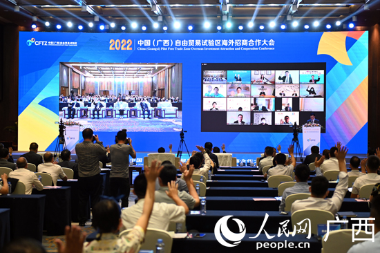 人民網(wǎng)南寧5月27日電 (記者彭遠(yuǎn)賀)5月27日下午,2022中國(廣西)自由貿(mào)易試驗(yàn)區(qū)海外招商合作大會在南寧舉行。大會以“自貿(mào)聯(lián)動世界,合作共繪藍(lán)圖”為主題,采用線上、線下結(jié)合方式,在北京和南寧同步設(shè)置主會場,在新加坡、馬來西亞、日本、韓國、德國、美國等國家或地區(qū)設(shè)置分會場,向全球展現(xiàn)廣西自貿(mào)試驗(yàn)區(qū)經(jīng)濟(jì)活力、創(chuàng)新動力和投資潛力,吸引全球優(yōu)質(zhì)資源匯聚,共商共享合作機(jī)遇,共譜合作新篇章。