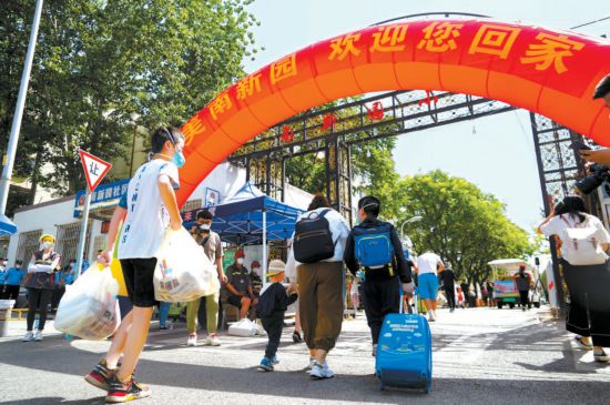 28日,朝陽區(qū)南新園小區(qū)近5000名居民結(jié)束集中隔離后開始陸續(xù)分批回家。 本報(bào)記者 程功攝