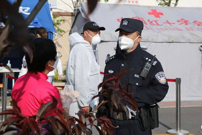 4月26日,周慶接到緊急通知,轄區(qū)公司一名員工被定為新冠肺炎密切接觸者。他迅速穿上防護(hù)裝備奔赴現(xiàn)場(chǎng),配合防疫部門落實(shí)封控措施、組織核酸檢測(cè)、維持現(xiàn)場(chǎng)秩序,工作有條不紊地開(kāi)展著。短短幾天后,30日凌晨又初診一名新冠肺炎陽(yáng)性病例,小區(qū)立刻進(jìn)行封控管理。
