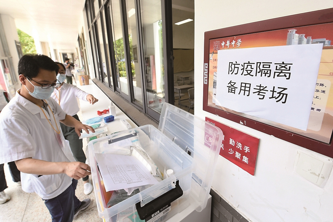 南京市中華中學(xué)考點備齊防疫物資,保障平安高考。 本報記者 萬程鵬 攝