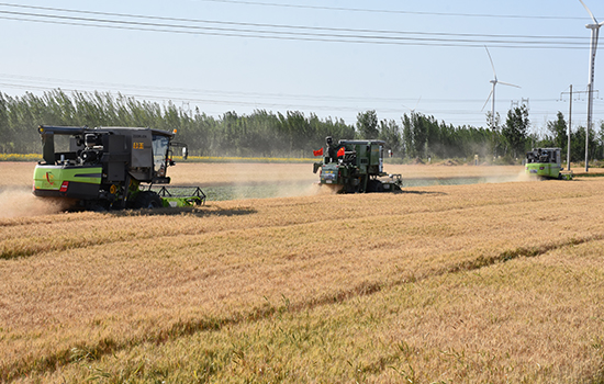 農(nóng)機轟鳴,金麥飄香。日前,河北省故城縣冬小麥進入收割時節(jié)。