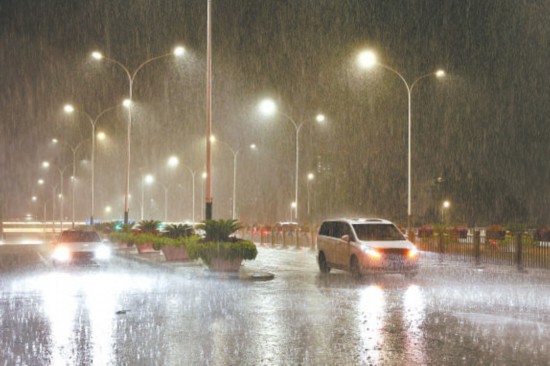 昨晚21:00,通州區(qū)遭遇暴雨天氣。據(jù)通州區(qū)氣象臺預(yù)計,宋莊鎮(zhèn)、潞城鎮(zhèn)、永順地區(qū)6小時降雨量達100毫米以上。本報記者 白繼開攝