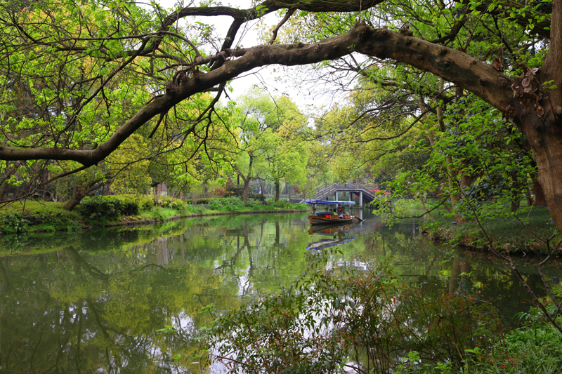 楊公堤?hào)|西兩側(cè)幽靜,野景富有層次,沿途草木蔥蘢,可謂“目遇之而成色”,人行景移,步移景換。