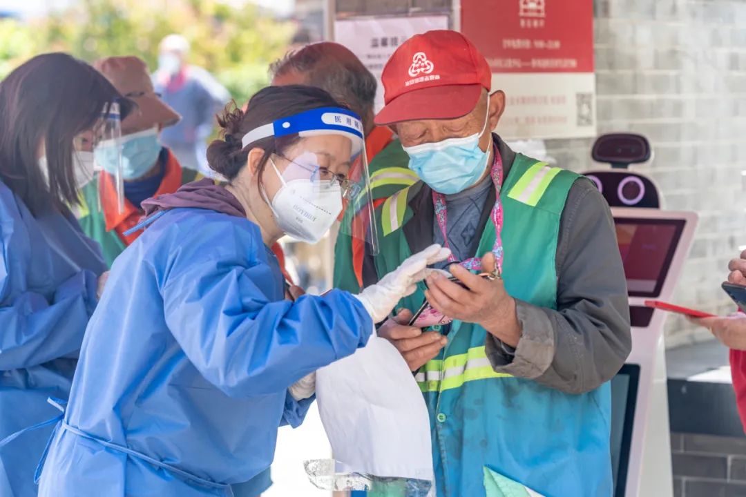 裴艷虹告訴記者,社區(qū)里老年人比較多,現(xiàn)場的工作人員需要特別有耐心,一點一點幫他們輸入信息。在太陽底下站了3個多小時的她,雖然很累,但看到有些80多歲的老人本可以在家等著上門檢測,卻還自己主動下樓檢測,“他們是不愿給別人添麻煩,讓我很感動,我累點也值得?!迸崞G虹表示,自己是一名黨員,也曾是一名醫(yī)務(wù)工作者,守護好人民群眾的身體健康和生命安全,是義不容辭的責(zé)任。