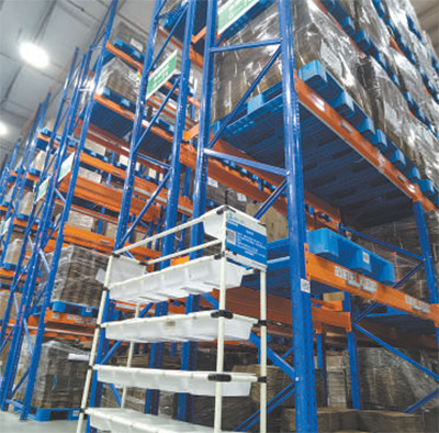 保稅倉內(nèi),裝滿進口醫(yī)藥產(chǎn)品的貨架。