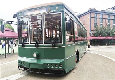 “鐺鐺車(chē)”長(zhǎng)約12米,車(chē)身為啞光墨綠色,深沉典雅。走進(jìn)車(chē)廂,棕紅色地板、仿木質(zhì)結(jié)構(gòu)座椅、同色系車(chē)窗和書(shū)架,每一處都彰顯經(jīng)典。