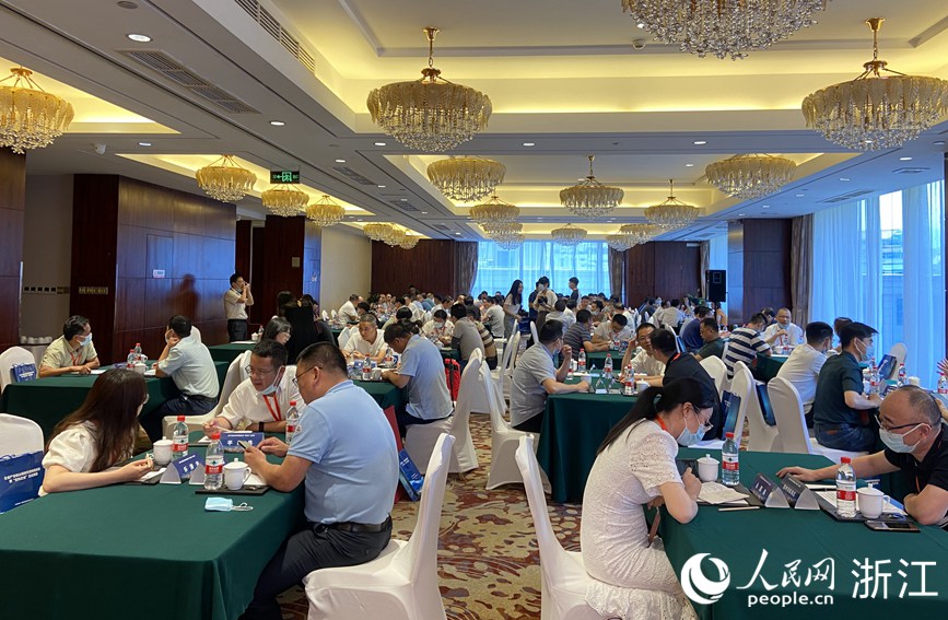 全省產(chǎn)業(yè)鏈山海協(xié)作現(xiàn)場推進(jìn)會(huì)暨“意向企業(yè)”走進(jìn)青田活動(dòng)現(xiàn)場。人民網(wǎng) 方彭依夢攝