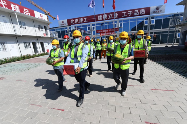 北京市已進(jìn)入盛夏高溫時(shí)節(jié),防暑降溫工作直接關(guān)系到勞動(dòng)者身體健康和企業(yè)生產(chǎn)安全。7月7日,由北京市總工會(huì)主辦的“最美勞動(dòng)者 微笑帶回家”系列活動(dòng)暨清涼送給首都建設(shè)者活動(dòng),在北京建工路橋集團(tuán)通州數(shù)據(jù)中心項(xiàng)目舉行,北京建工路橋集團(tuán)黨委書記王曉輝代表公司黨委、工會(huì)對(duì)建設(shè)者進(jìn)行慰問,向奮戰(zhàn)在施工一線建設(shè)者們送去清涼及防疫物資和真摯問候。