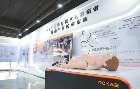 中關村機器人產(chǎn)業(yè)創(chuàng)新中心展廳內(nèi)的彩超機器人。本報記者 崔家寧攝