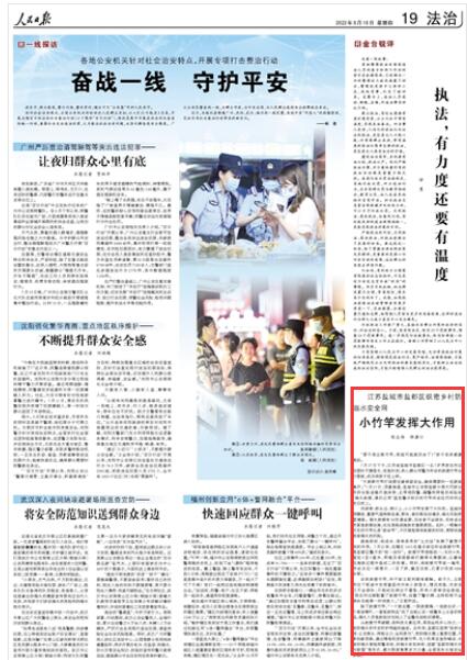 河岸旁、橋頭邊、閘口上,小小竹竿發(fā)揮了大作用。鹽城河網(wǎng)稠密,暑期氣溫持續(xù)走高,野泳、垂釣等活動增多,溺水風(fēng)險明顯增高。溺水救援有30秒黃金期,目擊者不會游泳、沒有適合的緊急救援設(shè)施,往往是貽誤施救的重要原因。此時,一根觸手可及的竹竿化身“救命竿”,不僅縮短等待救援的時間,更降低施救者溺水的風(fēng)險。