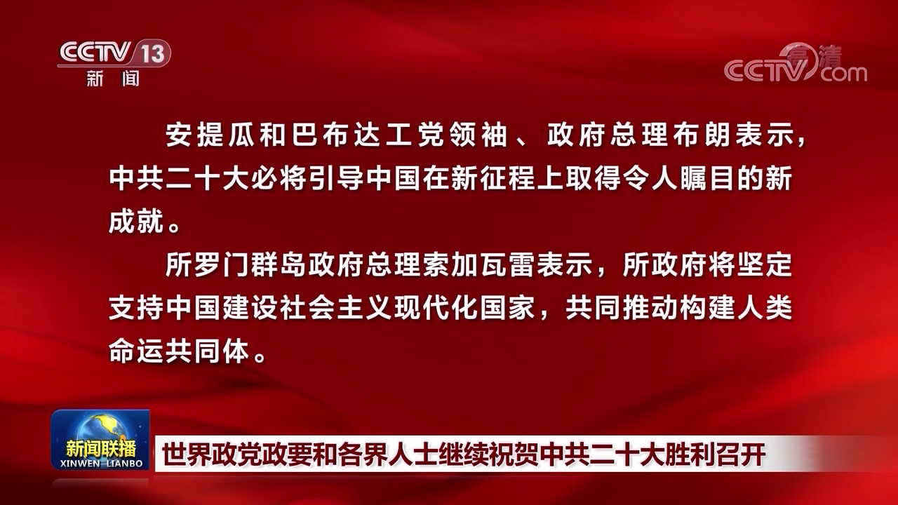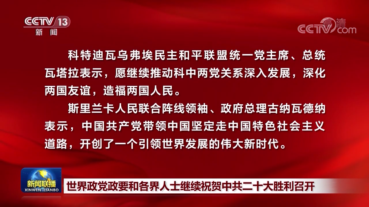 世界政黨政要和各界人士繼續(xù)祝賀中共二十大勝利召開