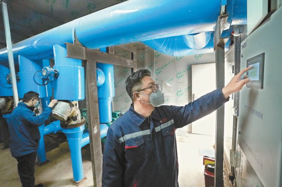 為應對氣溫驟降,海淀區(qū)“無煤化”空氣能集中供暖騷子營站的工作人員值守在崗,及時對運行機組數(shù)量和水溫進行調(diào)節(jié)。
