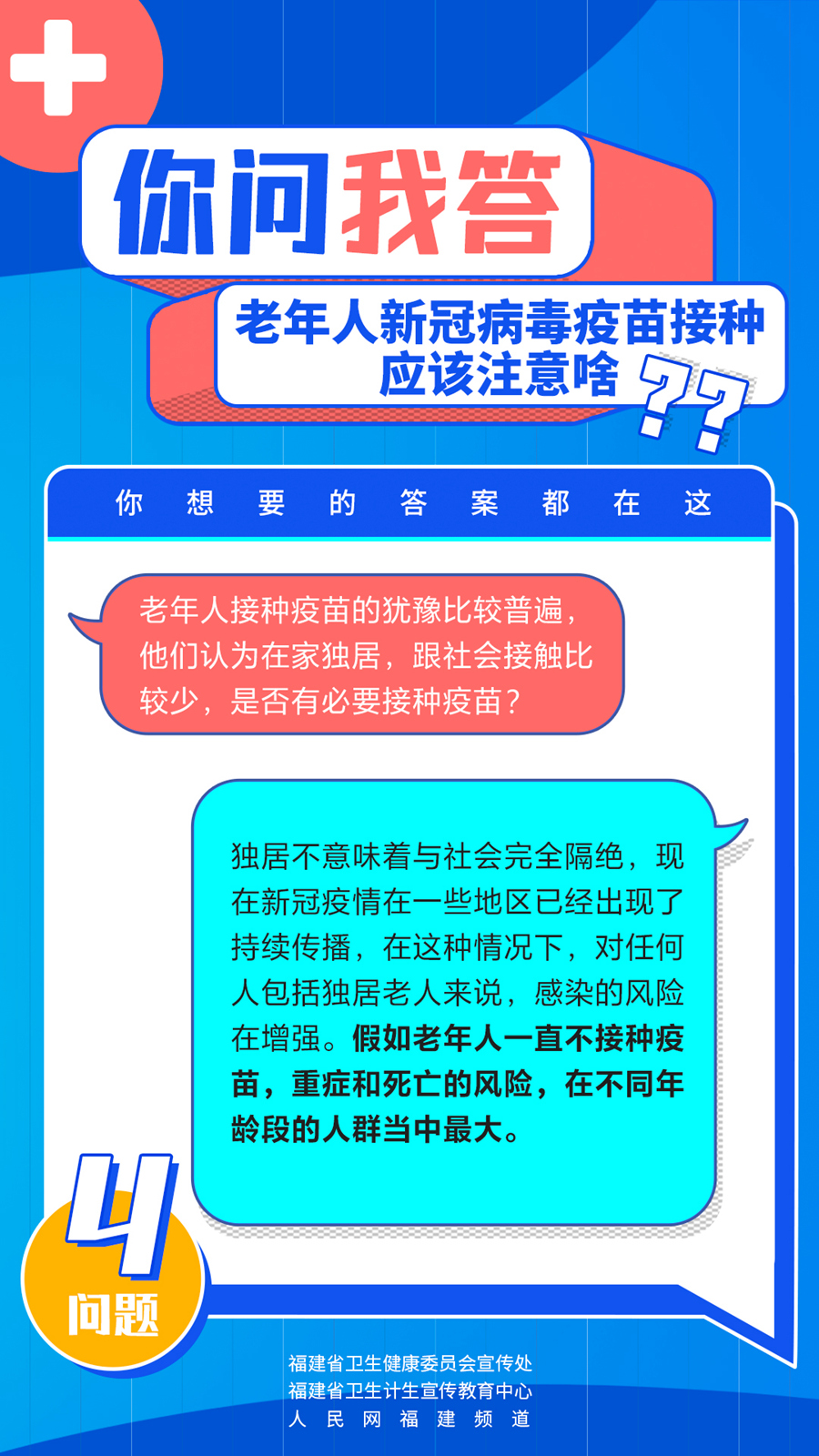 老年人接種疫苗是否安全?會(huì)有更強(qiáng)烈的不良反應(yīng)嗎?哪些老年人群不適合接種新冠病毒疫苗?你問(wèn)我答,快問(wèn)快答!老年人新冠病毒疫苗接種究竟應(yīng)該注意啥?