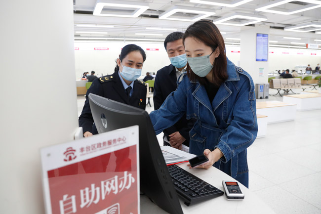劉鵬琨女士在工作人員的指導下辦理相關手續(xù)。渠忠濤攝