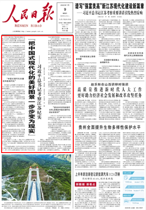 《人民日報》 2023年07月09日 第 01 版版面截圖