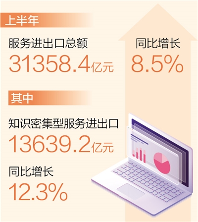 數(shù)據(jù)顯示,上半年知識密集型服務進出口13639.2億元,同比增長12.3%,占服務進出口總額的比重達43.5%,同比提升1.5個百分點。其中,知識密集型服務出口7923.4億元,增長16%;進口5715.8億元,增長7.5%。高附加值、高技術含量的知識密集型服務貿(mào)易實現(xiàn)較快增長、占比提升,說明我國服務出口競爭力明顯增強,正在向價值鏈高端攀升。