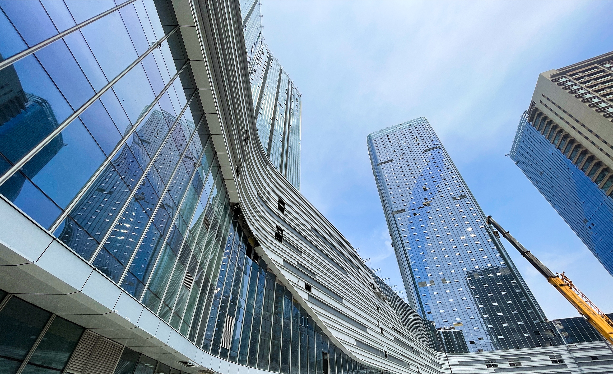 在山西建投·祥澐國(guó)際項(xiàng)目建設(shè)現(xiàn)場(chǎng),綠色圍擋里,大型機(jī)械正在奮力作業(yè),施工人員忙著主樓外幕墻施工,呈現(xiàn)出一派熱火朝天的場(chǎng)景。