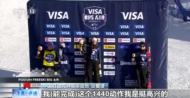 中國(guó)自由式滑雪運(yùn)動(dòng)員 谷愛凌:我(能完成)這個(gè)1440動(dòng)作我是挺高興的,因?yàn)槲沂莿倓倢W(xué)會(huì)的,我在奧地利訓(xùn)練的時(shí)候是(2021年)11月份學(xué)會(huì)的,所以能從三個(gè)禮拜前學(xué)會(huì)到現(xiàn)在比賽中(完成),我也是非常高興。這個(gè)是歷史上第一次有女子在比賽中完成這個(gè)高難度動(dòng)作。