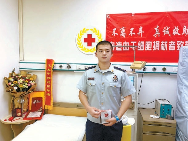 2021年5月,劉明航接到天津市紅十字會(huì)來(lái)電,他與一名2007年出生的血液病患者初配型成功,他毫不猶豫地回復(fù)愿意捐獻(xiàn)并前往天津,順利通過(guò)體檢和高分辨配型,并于同年6月完成捐獻(xiàn)。今年3月,他又接到北京市紅十字會(huì)的電話,患者病情出現(xiàn)了反復(fù),需要再進(jìn)行淋巴細(xì)胞移植鞏固治療。“當(dāng)我接到需要二次捐獻(xiàn)的消息時(shí),我心里其實(shí)沒(méi)有絲毫猶豫,因?yàn)槲沂且幻绬T,聽(tīng)到救人,是義無(wú)反顧的?!闭f(shuō)服了母親,劉明航再次前往采集淋巴細(xì)胞的醫(yī)院。