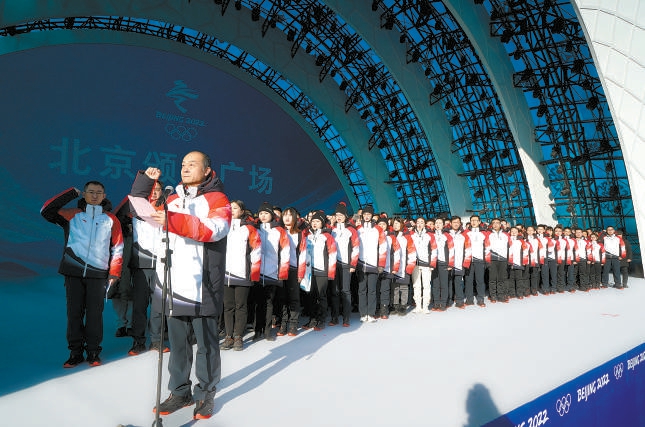 2021年元旦期間,北京頒獎(jiǎng)廣場(chǎng)剛剛落成,團(tuán)隊(duì)在舞臺(tái)上舉行誓師大會(huì)。