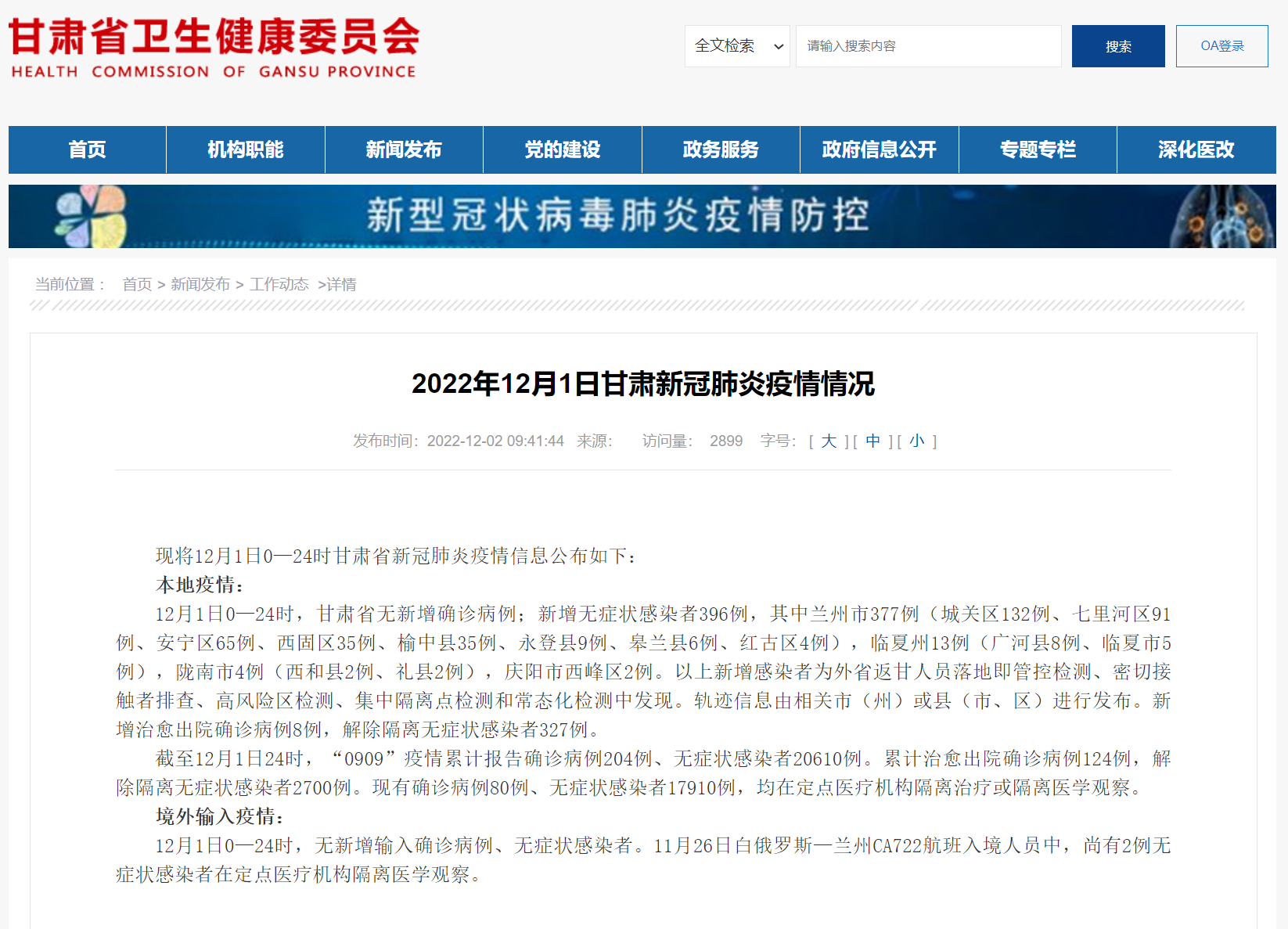 甘肅省衛(wèi)健委官網(wǎng)截圖