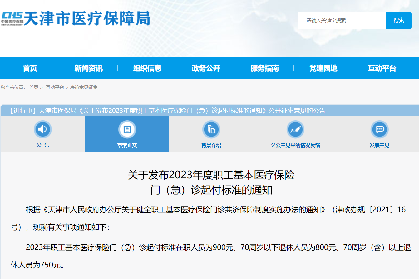 天津職工醫(yī)保門(急)診起付標(biāo)準(zhǔn)擬調(diào)整