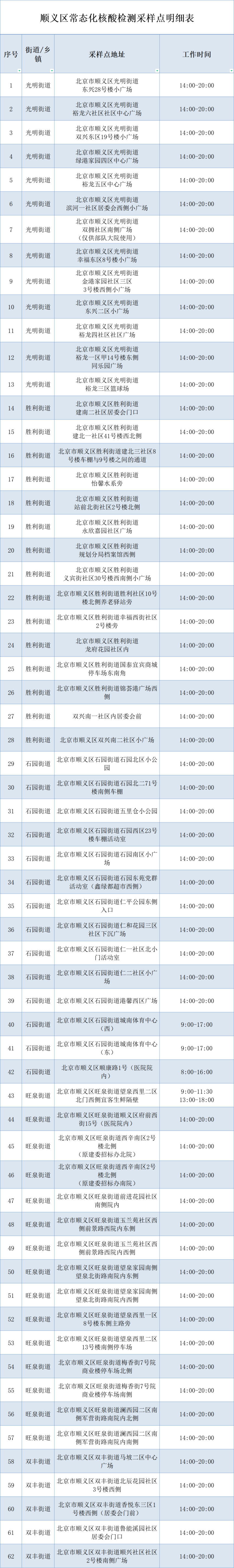 為了滿足市民就近檢測(cè)的需要,順義區(qū)公布了核酸采樣點(diǎn)位置和開放時(shí)間。
