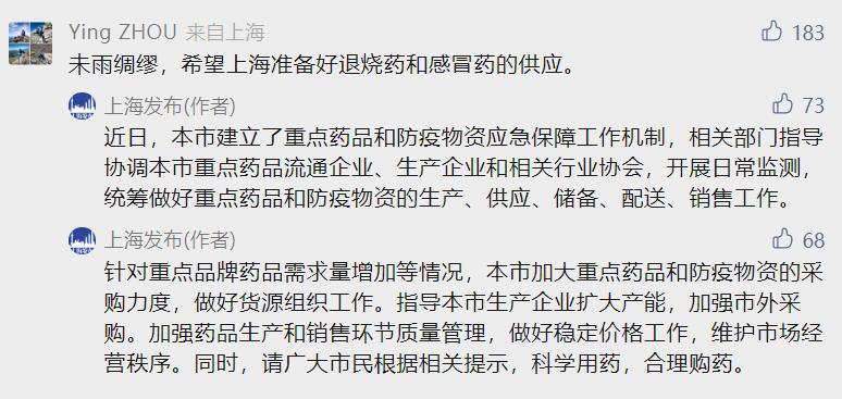 此外,“上海發(fā)布”微信公眾號還表示,近日,上海市建立了重點藥品和防疫物資應急保障工作機制,相關部門指導協(xié)調本市重點藥品流通企業(yè)、生產(chǎn)企業(yè)和相關行業(yè)協(xié)會,開展日常監(jiān)測,統(tǒng)籌做好重點藥品和防疫物資的生產(chǎn)、供應、儲備、配送、銷售工作。針對重點品牌藥品需求量增加等情況,上海市加大重點藥品和防疫物資的采購力度,做好貨源組織工作;指導上海市生產(chǎn)企業(yè)擴大產(chǎn)能,加強市外采購;加強藥品生產(chǎn)和銷售環(huán)節(jié)質量管理,做好穩(wěn)定價格工作,維護市場經(jīng)營秩序。同時,請廣大市民根據(jù)相關提示,科學用藥,合理購藥。