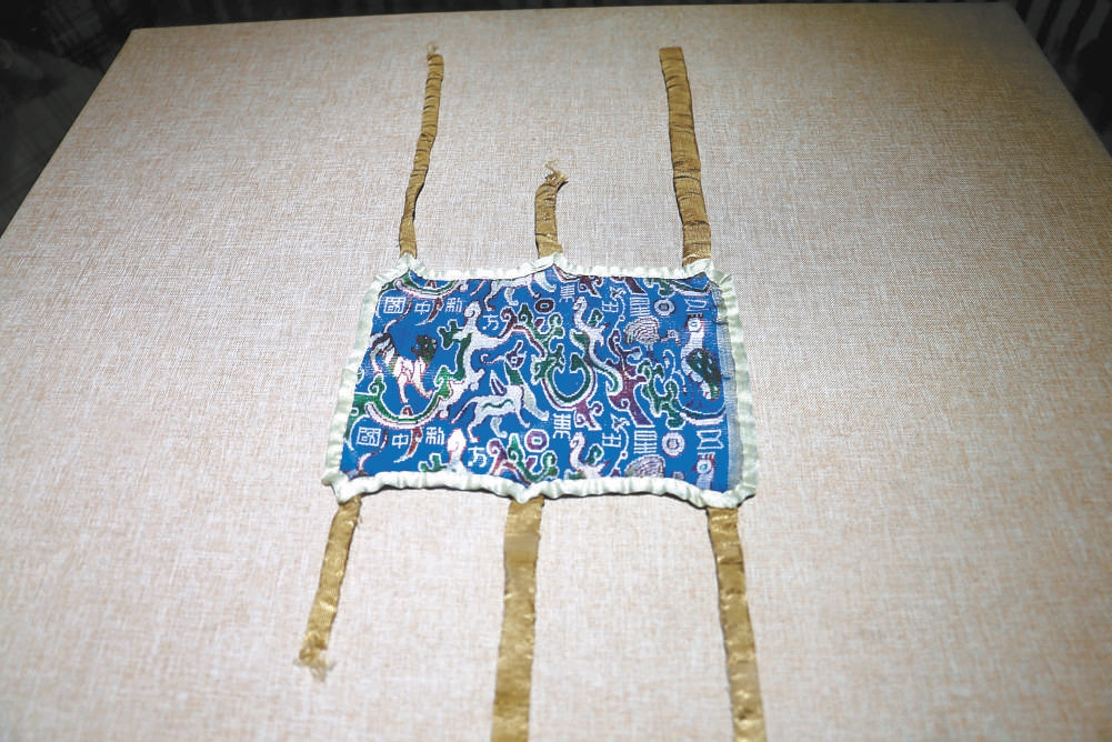 漢代“五星出東方利中國(guó)”錦護(hù)膊(復(fù)制品)。本報(bào)記者 王廣燕攝