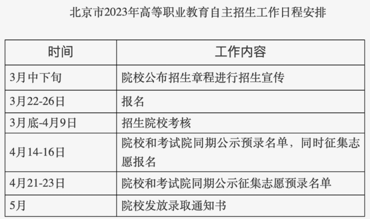 北京市2023年高等職業(yè)教育自主招生將于3月22日啟動報名。已參加本市2023年高考報名的統(tǒng)考考生和單考考生均可報名參加,每名考生限報一所院校。