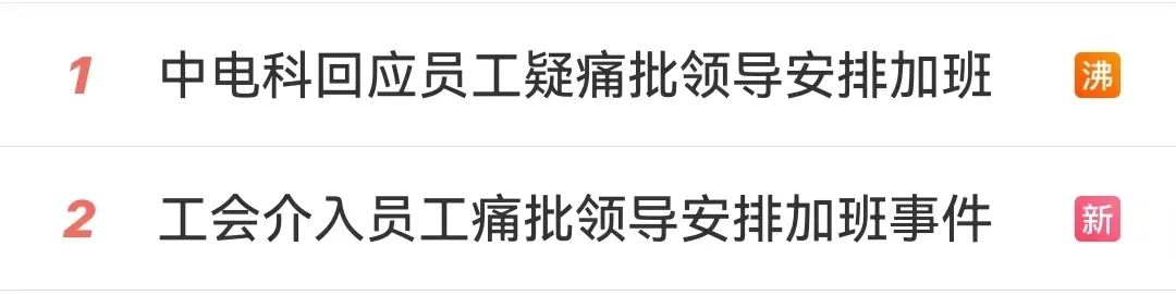 “員工疑痛批領(lǐng)導(dǎo)安排加班”熱搜第一!中電科最新回應(yīng)!