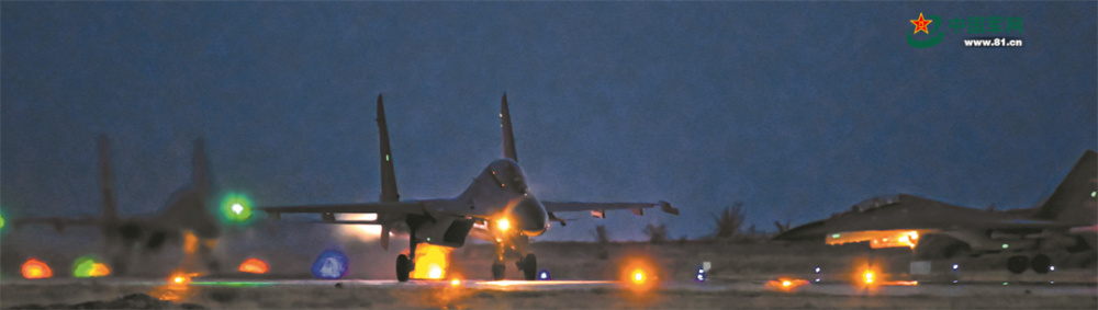 空軍航空兵某旅戰(zhàn)機(jī)蓄勢待發(fā),即將開展夜間飛行訓(xùn)練。喻澤琪 攝