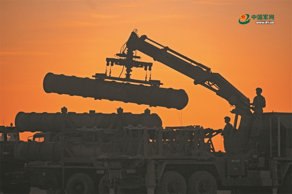 空軍地導(dǎo)某旅官兵快速吊裝導(dǎo)彈,開展夜間空地對抗演練。向坤 攝