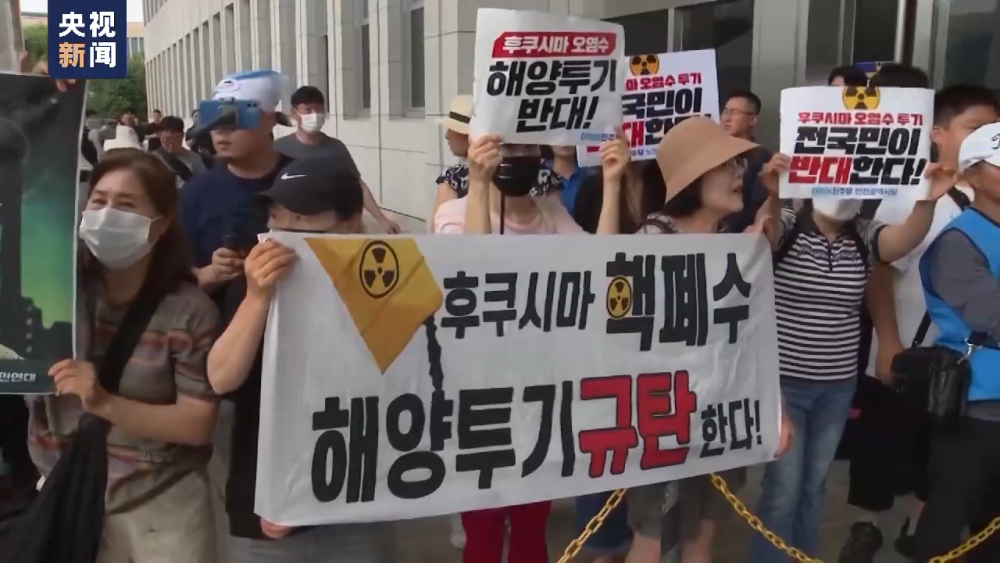 當(dāng)天,韓國民眾在國會前舉行集會,反對日本政府強推核污染水排海計劃,認(rèn)為國際原子能機構(gòu)評估報告不可信。