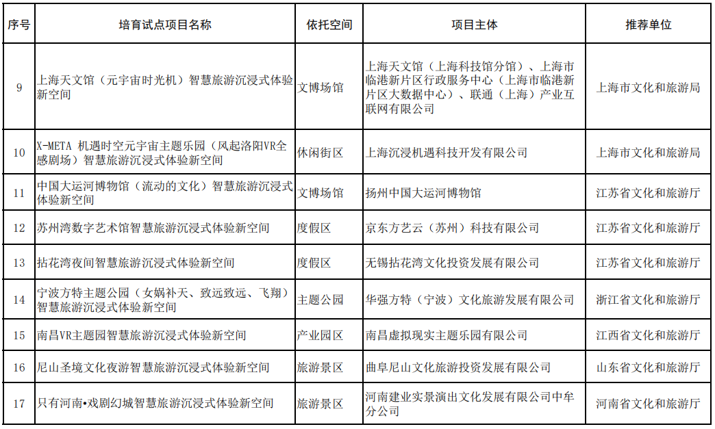 全國首批24個(gè)智慧旅游沉浸式體驗(yàn)新空間培育試點(diǎn)公示