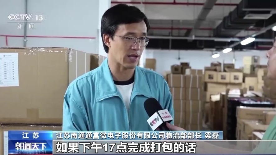 江蘇南通通富微電子股份有限公司物流部部長 梁磊:我們當(dāng)天的出貨,如果17點完成打包的話,當(dāng)天晚上12點前,基本就能到達(dá)深圳??蛻舻囊恍┨丶奔?,我們甚至凌晨就能派送到位。