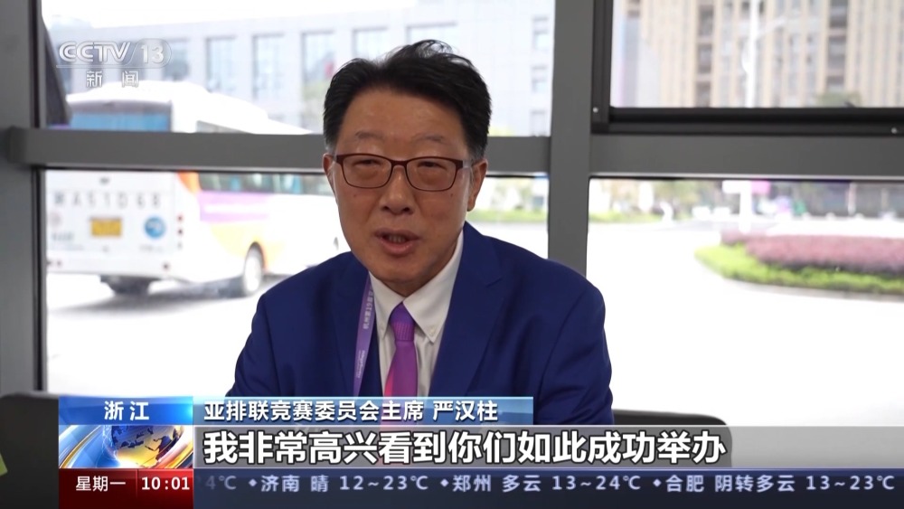亞排聯(lián)競賽委員會(huì)主席嚴(yán)漢柱:我非常高興看到你們?nèi)绱顺晒εe辦亞運(yùn)會(huì)的男排和女排比賽,場館內(nèi)外工作人員,他們在自己崗位上盡職盡責(zé),沒有出現(xiàn)任何問題,有如此優(yōu)秀的場館,我想在未來見證這個(gè)場館舉辦更多的排球國際賽事,我還會(huì)再來的。
