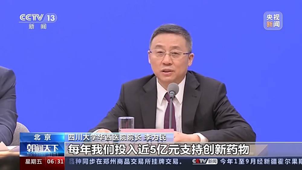 四川大學華西醫(yī)院院長 李為民:我們設(shè)立了學科發(fā)展資金,每年我們投入近5億元支持創(chuàng)新藥物、創(chuàng)新器械、創(chuàng)新診療方案的臨床及轉(zhuǎn)化研究。鼓勵我們的醫(yī)務(wù)人員、科技人員進行轉(zhuǎn)化創(chuàng)新,其轉(zhuǎn)化的成果80%到90%獎勵給團隊。近五年,全院科技成果轉(zhuǎn)化200多項,轉(zhuǎn)化合同金額超過10億元。