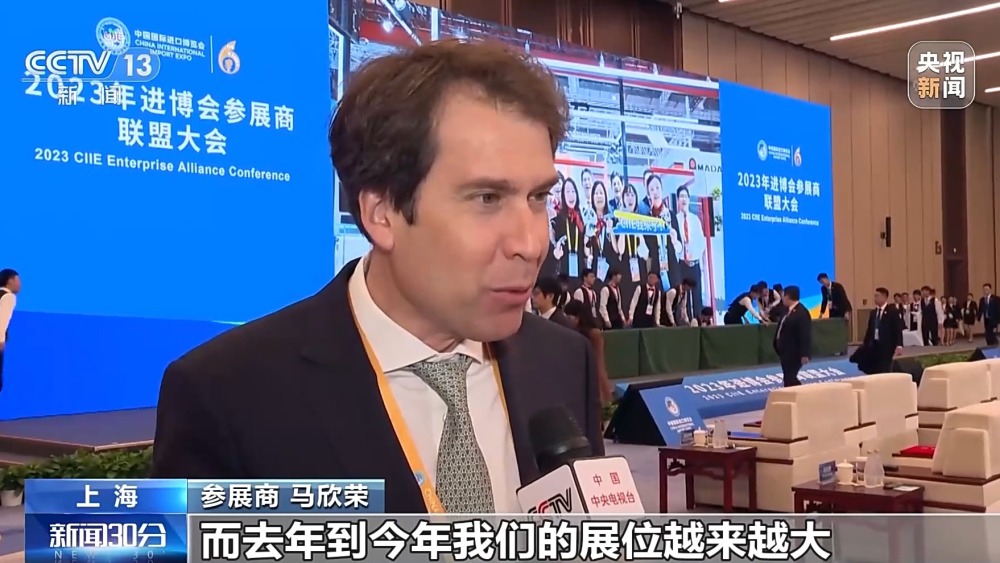 總臺央視記者 楊曜語:我現(xiàn)在所在的是第六屆進博會參展商聯(lián)盟大會的現(xiàn)場,第六屆進博會時間還未過半,就有60余家企業(yè)確認簽約明年的進博會。