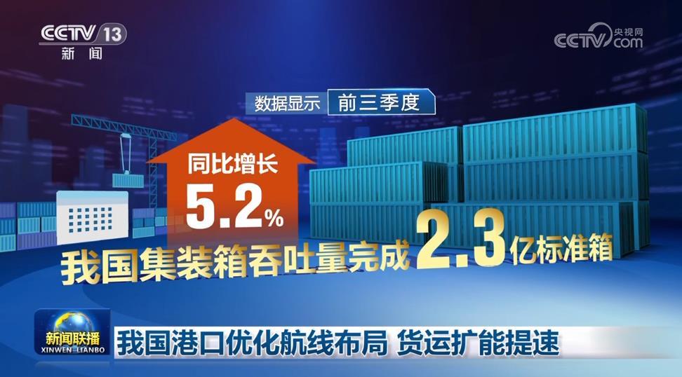 央視網(wǎng)消息(新聞聯(lián)播):今年以來,我國港口緊跟市場需求,積極優(yōu)化航線布局,加大貨物運(yùn)輸?shù)亩嗍铰?lián)運(yùn),助力我國經(jīng)濟(jì)發(fā)展。