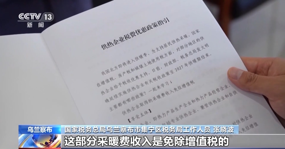 國(guó)家稅務(wù)總局烏蘭察布市集寧區(qū)稅務(wù)局工作人員 張曉波:向居民供熱取得的這部分采暖費(fèi)收入是免除增值稅的,為了支持企業(yè)發(fā)展,也免除“房土”兩稅。