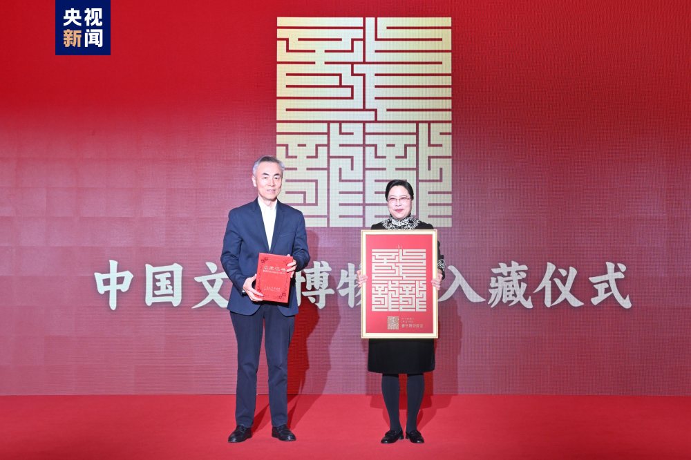 發(fā)布儀式上,2024年總臺春晚主標(biāo)識被中國文字博物館正式收錄入館。2024年總臺春晚主標(biāo)識的“龘”字,整體設(shè)計以中國傳統(tǒng)篆刻藝術(shù)中極具特色的“國朝官印”字體——九疊篆為靈感來源,莊重平衡、中正勻稱,彰顯出大氣雄健的文化氣象。總臺春晚以“龘”字為題眼,用“龘龘”之姿生動描摹十四億中華兒女奮發(fā)有為、昂揚(yáng)向上的精神風(fēng)貌。