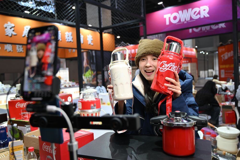2023年12月21日,浙江省永康市一家保溫杯企業(yè)電商部門的工作人員通過直播推介保溫杯產(chǎn)品。新華社記者 韓傳號 攝