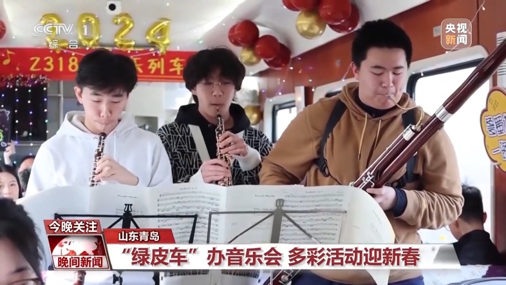 隨著春節(jié)臨近,在外務(wù)工的游子們紛紛踏上了回家的旅途。為了給這些辛苦一年的務(wù)工人員帶去歡樂,在青島北開往成都西Z318次列車上,悅耳的歡快旋律響起。列車工作人員邀請(qǐng)三位學(xué)生旅客,為大家演奏了悠揚(yáng)歡快的樂曲。