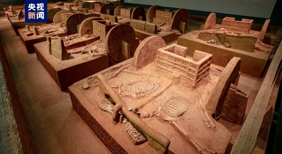 “車轔轔馬蕭蕭”殷墟車馬遺跡展,展廳內(nèi)23座車馬坑遺跡,矩陣式陳列,氣勢震撼。展示了商代裝飾華麗、結(jié)構(gòu)精巧、機(jī)動(dòng)靈活的馬車,是中國目前所見最早的馬車實(shí)物標(biāo)本,更是對(duì)三千多年前商文明的生動(dòng)詮釋。經(jīng)過近百年探索,殷墟發(fā)掘車馬坑九十余座,再現(xiàn)了商代馬車面貌。馬車不僅作為王室貴族的代步工具,也在驛站傳遞、田獵出行、載兵作戰(zhàn)等方面發(fā)揮著重要作用。殷墟馬車多埋于大型墓葬附近或墓道內(nèi)、以車、馬、人合葬居多。殷墟早期以車馬器陪葬,車馬器套數(shù)代表主人所擁有的馬車數(shù)量,見證著主人身份等級(jí)的高低;晚期馬車陪葬成為中、上級(jí)貴族的專屬,彰顯著墓主人的赫赫權(quán)威,亦是馬車陪葬制度的萌芽。