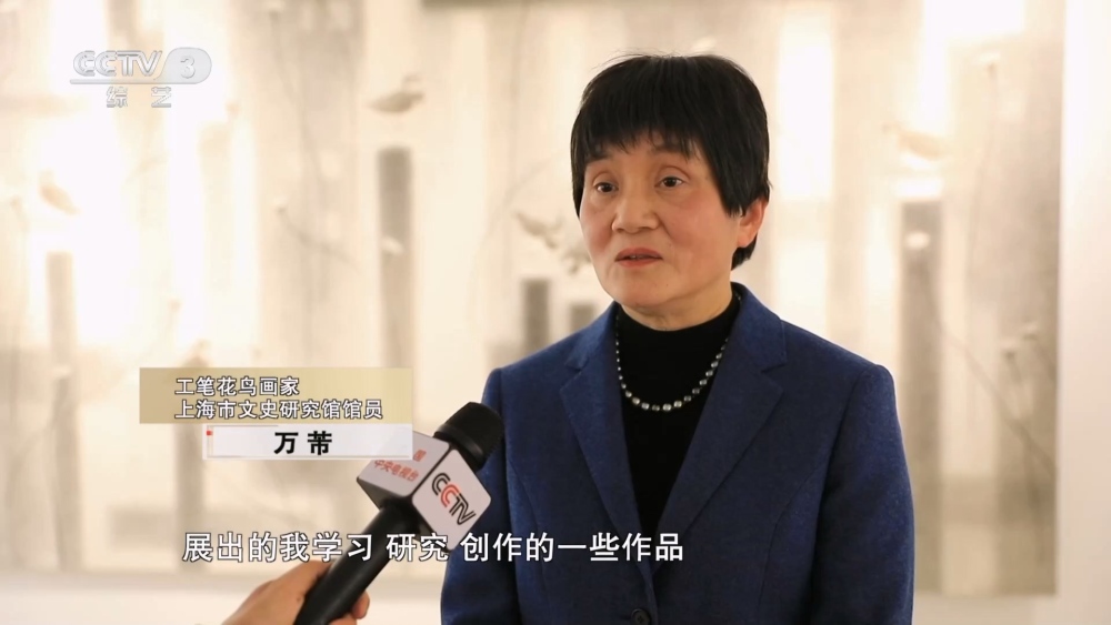 工筆花鳥畫家 上海市文史研究館館員 萬芾:實際上展覽的這個時間度是跨越了有四十多年,展出的我學(xué)習(xí)、研究、創(chuàng)作的一些作品。我是和策展人一起商量,把自己從學(xué)習(xí)到成為一個女性藝術(shù)家這個經(jīng)歷做一個梳理,以及我畫的一些跨界的一些創(chuàng)作,甚至還有我和學(xué)生合作的一些衍生品,這是三個部分,完全不一樣的內(nèi)容來展現(xiàn)給大家。