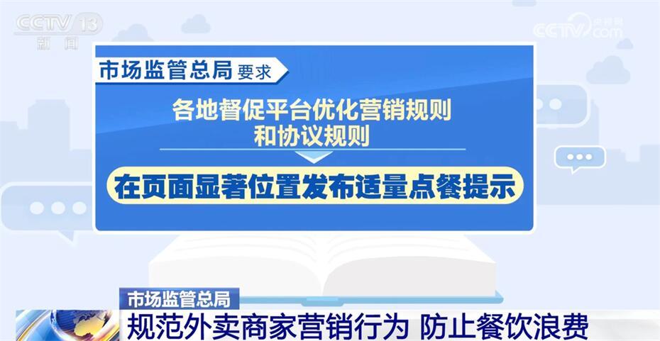 市場監(jiān)管總局要求各地督促平臺優(yōu)化營銷規(guī)則和協(xié)議規(guī)則,在頁面顯著位置發(fā)布適量點(diǎn)餐提示;鼓勵(lì)平臺健全激勵(lì)機(jī)制,推動(dòng)商家開發(fā)、提供、推廣小份餐品,合理設(shè)置餐品起送價(jià)格,優(yōu)化滿減湊單機(jī)制,不將主食納入滿減優(yōu)惠展示范圍,鼓勵(lì)使用食安封簽。線上線下、同頻同步開展防止餐飲浪費(fèi)與食品安全監(jiān)督檢查,持續(xù)開展“隨機(jī)查餐廳”行動(dòng)。對造成明顯浪費(fèi)、嚴(yán)重浪費(fèi)且拒不改正的,依法嚴(yán)厲處罰并公開曝光。