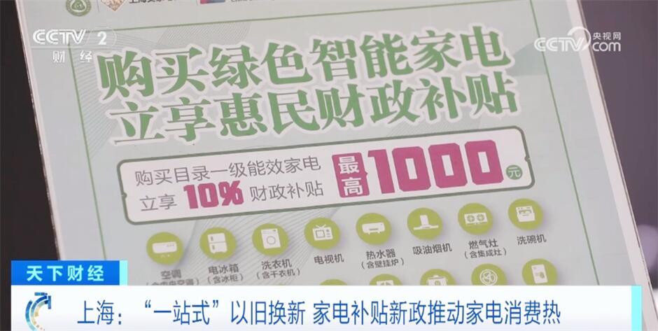 央視網(wǎng)消息:日前,國務(wù)院印發(fā)《推動大規(guī)模設(shè)備更新和消費品以舊換新行動方案》,明確實施消費品以舊換新行動。上海市從3月30日起實施新一輪綠色智能家電消費補貼政策,對16大類一級能效家電產(chǎn)品進(jìn)行補貼,各大商超賣場也推出“一站式”以舊換新、延伸局部改造等補貼及服務(wù)。